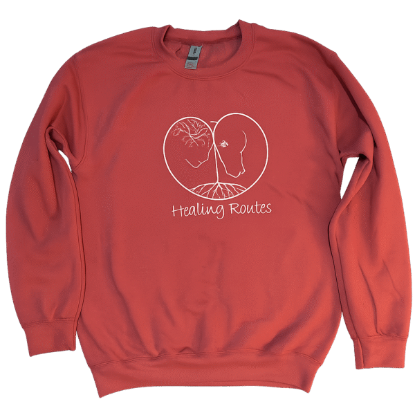Heather Scarlett Red Crewneck Sweatshirt with Healing Routes Logo