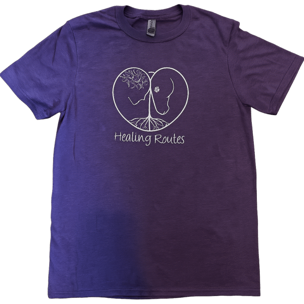 Premium purple t-shirt with Healing Routes Logo